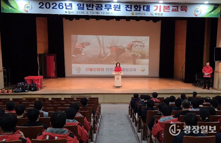 광장일보 주재영 기자 | 전라남도는 13일 무안 남악 복합주민센터에서 공무원의 산불 대응역량 강화를 위해 2026년 일반공무원 진화대 현장교육을 했다.