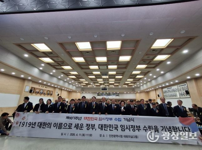 광장일보 주재영 기자 | 우리나라 최초 민주공화정인 대한민국임시정부 수립 제107주년을 기념하는 행사가 지난 4월 11일 광복회 인천광역시지부 주관으로 인천시청 대회의실에서 개최됐다.
