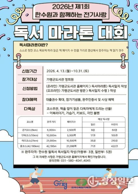 광장일보 주재영 기자 | 가평군이 한국수력원자력㈜ 청평수력발전소의 지원을 바탕으로 ‘전기사랑 독서마라톤’의 본격적인 레이스에 돌입했다.