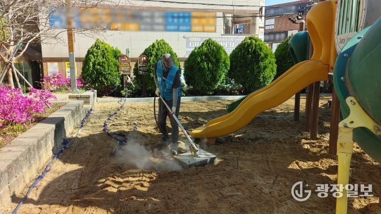 아울러, 어린이들이 보다 쾌적한 환경에서 마음껏 뛰어놀 수 있도록 어린이공원 16개소의 모든 놀이시설과 바닥을 전문 장비로 스팀 소독을 하는 등 위생 관리도 강화해 보다 깨끗한 이용 환경으로 유지하고 있다.