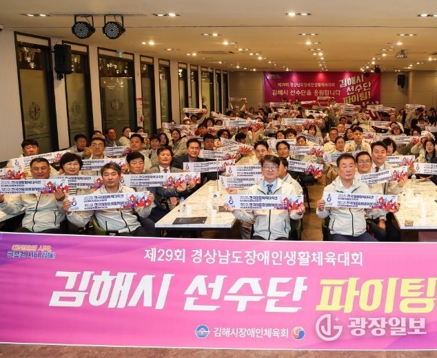 광장일보 주재영 기자 | 김해시장애인체육회는 16일 김해 라페스타뷔페에서 제29회 경상남도장애인생활체육대회에 참가하는 김해시 선수단 결단식을 개최했다.