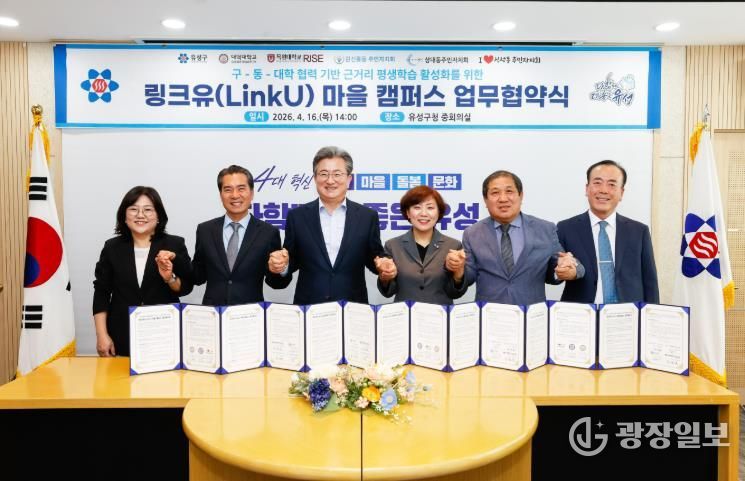 광장일보 나학천 기자 | 대전 유성구는 16일 원신흥동·상대동·신성동 주민자치회와 목원대학교·대덕대학교가 ‘링크유(LinkU) 마을캠퍼스’ 업무 협약을 체결했다고 밝혔다.