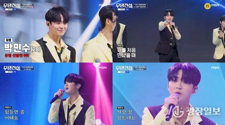 광장일보 =주재영 기자 | 가수 박민수가 MBN 초대형 트롯 오디션 '무명전설-트롯 사내들의 서열전쟁'에서 뛰어난 무대 장악력을 선보였다.