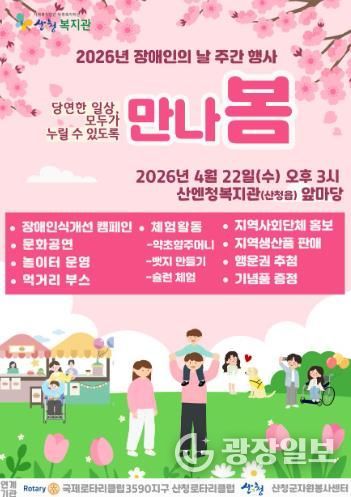 광장일보 주재영 기자 | 산엔청복지관은 장애인의 날을 맞아 ‘만나봄’ 행사를 오는 22일 복지관 앞마당에서 개최한다고 17일 밝혔다.