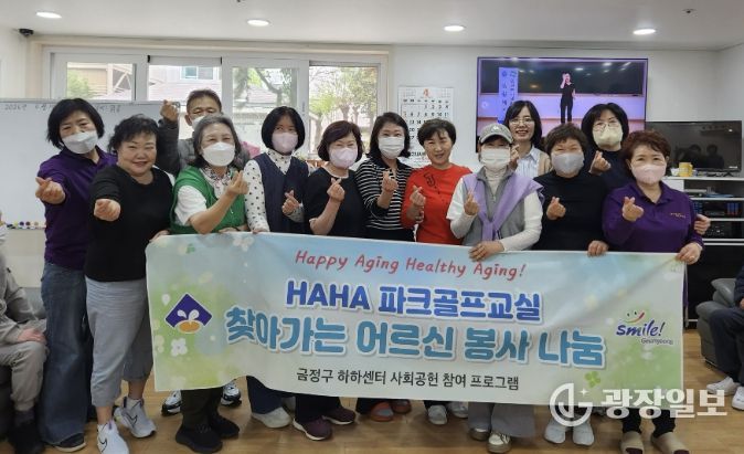 광장일보 주재영 기자 | 부산 금정구 하하센터(금사동 소재)는 지난 14일 신노년 건강강좌 파크골프교실 수강생들이 관내 어르신 주간보호센터를 방문해 찾아가는 재능기부 봉사활동을 실시했다고 밝혔다.