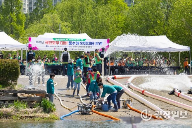 광장일보 주재영 기자 | 부산광역시 북구청은 여름철 극한 강우와 태풍 등 자연재난에 대비하여 지난 16일 화명생태공원 계류장에서 ‘2026년 풍수해 현장대응 수방장비 가동훈련’을 실시했다고 밝혔다.