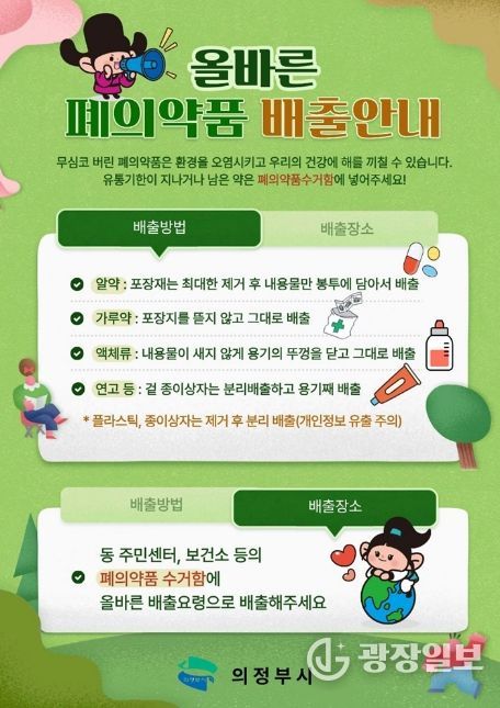 광장일보 주재영 기자 | 의정부시는 일상생활에서 발생하는 유해 폐기물인 폐의약품을 안전하게 수집‧처리하기 위해 관내 동 주민센터와 공동주택 등 총 31개소에 ‘폐의약품 수거함’을 설치했다.