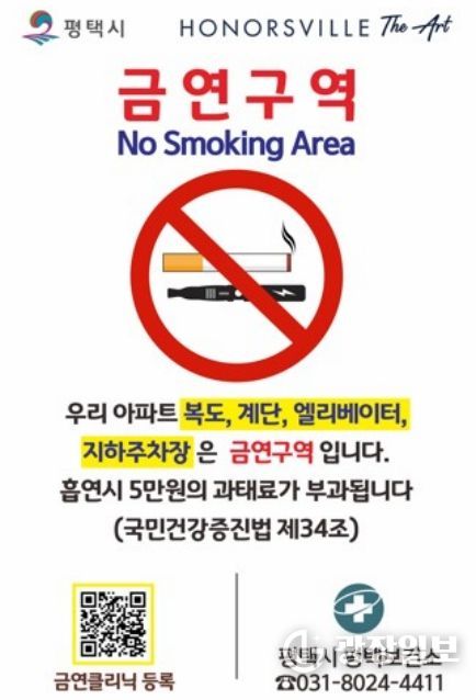 광장일보 박균현 기자 | 평택시가 시민의 건강권을 보호하고 담배 연기 없는 쾌적한 주거환경을 조성하기 위해 지난 3월 10일, 통복동 소재 ‘평택역 경남아너스빌 디아트’를 평택시 제45호 공동주택 금연구역(금연아파트)으로 지정했다고 밝혔다.