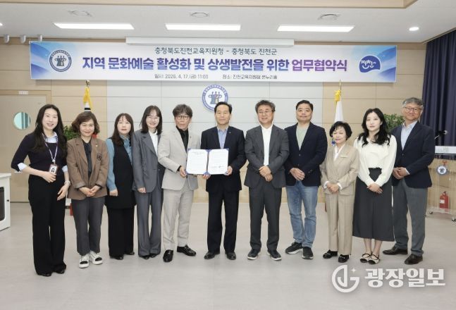 광장일보 이현나 기자 | 충북 진천군과 진천교육지원청은 17일 진천교육지원청 온누리홀에서 ‘지역 문화예술 활성화와 상생발전’을 위한 업무협약을 체결했다고 밝혔다.