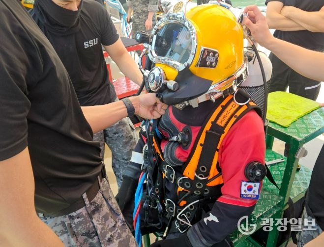 공기호스를 지상과 연결하여 장시간 안정적인 수색구조 활동이 가능한 △ SSDS 및 챔버 운용절차 및 팀워크 숙달훈련과 △ ROV(수중드론)을 활용한 서해환경에서의 수색기법 논의 및 현장운용 훈련을 실시했다.