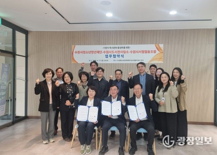 광장일보 박균현 기자 | 수원시 도서관사업소와 수원시청소년청년재단, 수원시서점협동조합이 지역 독서문화 활성화와 시민 독서활동 증진을 위해 협력하기로 했다.