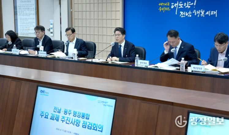 광장일보 주재영 기자 | 전라남도는 17일 도청 서재필실에서 전남·광주 행정통합 주요 과제 추진상항 점검회의를 열어 오는 7월 1일 출범하는 전남광주통합특별시의 성공적 탄생에 총력을 기울이기로 했다.