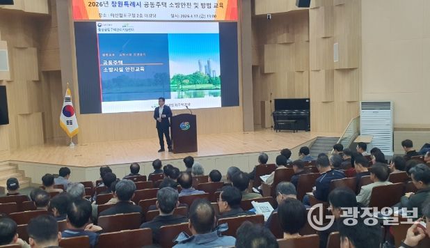광장일보 주재영 기자 | 창원특례시는 공동주택의 안전한 주거환경 조성과 체계적인 시설 관리를 위해 지난 17일, 마산합포구청 대회의실에서 공동주택 관리주체를 대상으로 ‘2026년 상반기 공동주택관리 소방안전 및 방범교육’을 실시했다고 밝혔다.