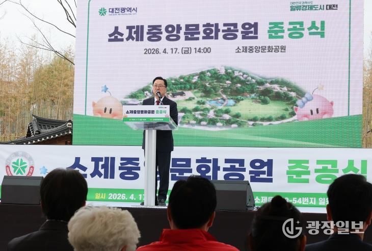 광장일보 나학천 기자 | 대전시는 4월 17일 소제동 일원에서 이장우 대전시장을 비롯해 박희조 동구청장, 오관영 동구의회 의장, 지역주민 등 150여 명이 참석한 가운데 ‘소제중앙문화공원 조성사업’ 준공식을 개최했다.