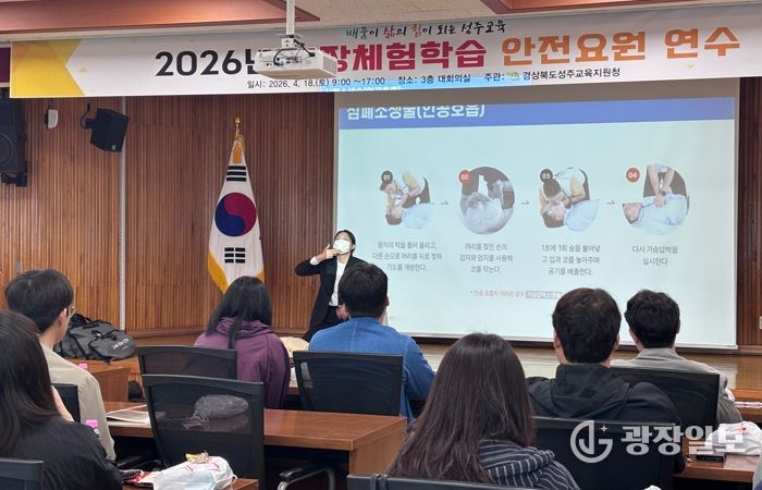 광장일보 주재영 기자 | 성주교육지원청은 4월 18일 관내 초·중·고등학교 교사 30명을 대상으로 현장체험학습 운영의 안전 역량을 강화하기 위해 '2026년 현장체험학습 안전요원 연수'를 실시했다.