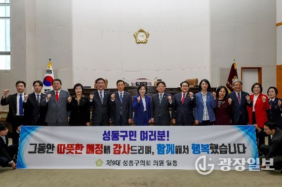 14명의 의원들은 지난 4년간의 의정활동에 아낌없는 성원을 보내준 성동구민에게 깊은 감사를 전하고, 제9대 의회의 임기가 끝나도 구민의 행복과 성동구의 발전을 위해 기꺼이 힘을 보태겠다고 다짐했다.