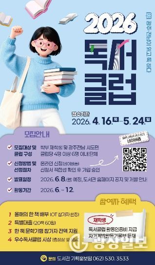 광장일보 주재영 기자 | 전남대학교가 지역사회 내 책 읽는 문화를 확산하고 공동체 소통을 활성화하기 위해 오는 5월 24일(일)까지 ‘2026 독서클럽’ 참여자를 모집한다.