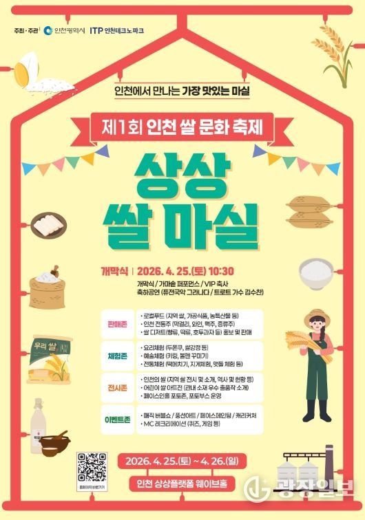 인천TP 관계자는 “상상플랫폼이라는 상징적 공간에서 우리 식문화의 중심인 쌀을 현대적으로 재해석한 축제를 선보이게 되어 뜻깊다”며, “이번 주말 많은 시민이 방문해 인천 쌀의 새로운 맛과 멋을 만끽하시길 바란다”고 말했다.