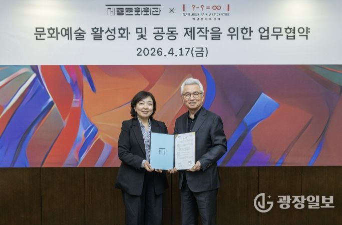 광장일보 박균현 기자 | 경기문화재단 백남준아트센터와 재단법인 세종문화회관은 4월 17일, 동시대 예술의 담론 확장과 지속가능한 창작 생태계 조성을 위한 업무협약(MOU)을 체결했다. 이번 협약은 양 기관의 상호존중과 신뢰를 바탕으로, 서울과 경기 지역을 연결하는 광역 문화권 공동제작 모델을 구축하기 위한 협력의 출발점으로 마련됐다.