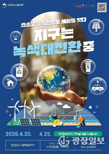 광장일보 주재영 기자 | 구미시는 제56주년 지구의 날(4월 22일)을 맞아 시민들의 탄소중립 인식을 높이고 생활 속 실천 문화를 확산하기 위해 4월 20일부터 26일까지 ‘기후변화주간’을 운영한다.