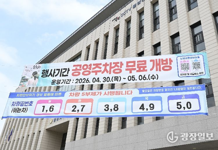 광장일보 주재영 기자 | 남원시가 제96회 춘향제를 맞이하여 오는 4월 30일부터 5월 6일까지 7일간 관내 유료공영주차장을 전면 무료 개방하기로 했다.