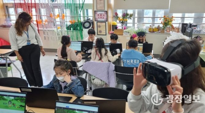 ▲'AR+VR' 수업은 5~6학년을 대상으로 ‘AR+VR기기와 소프트웨어를 활용하여 가족과 함께하고 싶은 휴가 계획하기’, ‘가족과 관련된 기념일 알아보기’ 등의 활동이 진행된다.