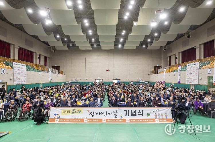 광장일보 주재영 기자 | 칠곡군장애인단체연합회(회장 조정수)는 지난 18일 칠곡국민체육센터에서 한영희 칠곡부군수와 기관·단체장, 장애인단체 및 시설 관계자, 회원, 가족, 자원봉사자 등 700여명이 참석한 가운데 ‘제11회 칠곡군 장애인의 날 기념식’을 성황리에 개최했다.