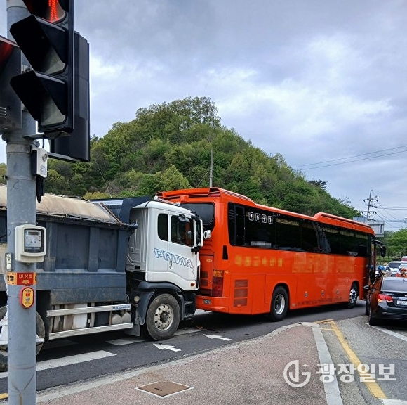 광장일보 =주재영 기자 | 충북 옥천군 옥천읍 삼양리의 한 도로에서 25t 화물차가 코레일 신입사원들을 태운 버스를 들이받아 26명이 다치는 사고가 발생했다.