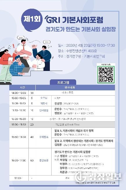 광장일보 박균현 기자 | 경기연구원은 오는 23일 오후 3시 수원컨벤션센터 403호에서 ‘경기도가 만드는 기본사회 실험장’을 주제로 ‘제1회 GRI 기본사회포럼’을 개최한다.