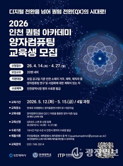 시는 연세대학교와 협력해 ‘2026 인천 퀀텀 아카데미’의 교육생을 모집한다.