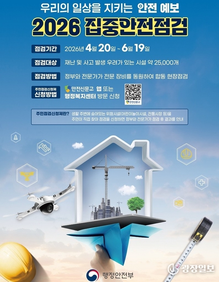 광장일보= 주재영 기자 | 파주시는 시민들이 보다 안전한 환경에서 생활할 수 있도록 '2026 집중안전점검'을 4월 20일부터 6월 19일까지 추진한다고 밝혔다.