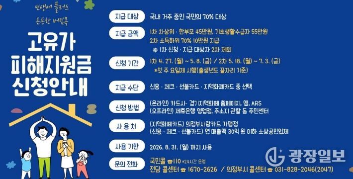광장일보 주재영 기자 | 의정부시는 중동전쟁으로 촉발된 고유가‧고물가로 인한 국민 부담을 경감하고자 ‘고유가 피해지원금’ 신청을 4월 27일부터 접수한다.