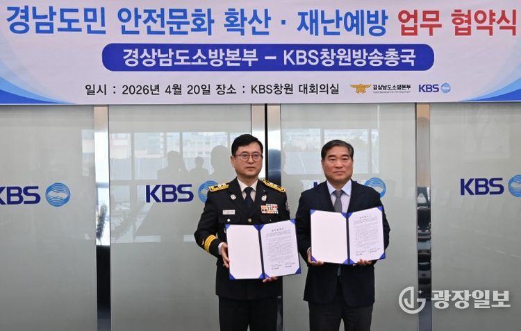 광장일보 주재영 기자 | 경상남도 소방본부는 20일 KBS창원방송총국 회의실에서 도민의 생명과 재산을 보다 촘촘하게 보호하기 위해 KBS창원방송총국과 ‘재난방송 협력 체계 고도화’를 위한 업무협약을 체결했다.