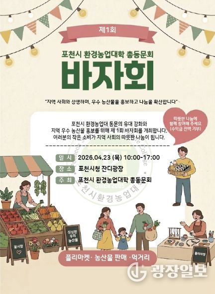 광장일보 주재영 기자 | 포천시 환경농업대학 총동문회가 오는 4월 23일, 지역사회와의 상생과 나눔을 실천하기 위한 ‘제1회 나눔 바자회’를 개최한다.