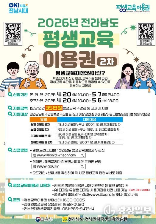 시 관계자는 “평생교육이용권이 디지털시대를 살아가는 시민의 역량 강화와 자기계발에 도움이 되길 바란다”며 “앞으로도 누구나 배움의 기회를 누릴 수 있도록 평생교육 지원을 확대해 나가겠다”고 말했다.