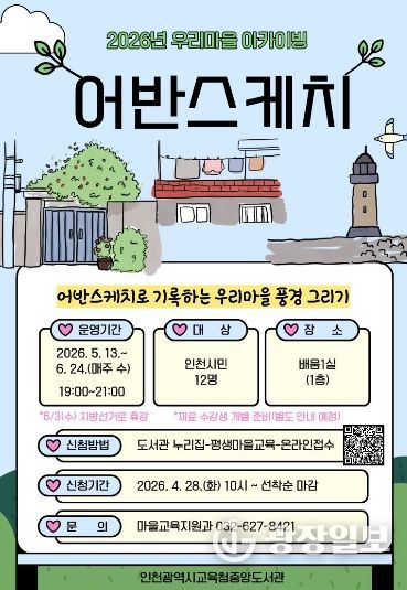 광장일보 주재영 기자 | 인천광역시교육청중앙도서관은 2026년도 마을교육 아카이빙 사업의 일환으로, 5월 13일부터 ‘우리 마을 아카이빙, 어반스케치’ 프로그램을 운영한다.
