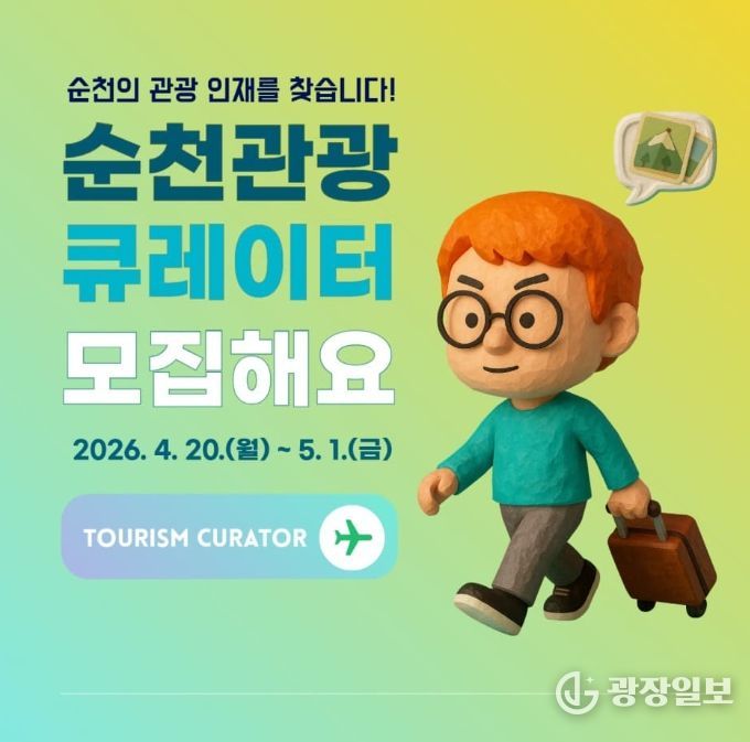 순천시는 관광자원을 새롭게 해석하고 콘텐츠로 연결할 청년 인재를 발굴하기 위해 '2026 순천 관광 큐레이터'를 오는 5월 1일까지 모집한다.