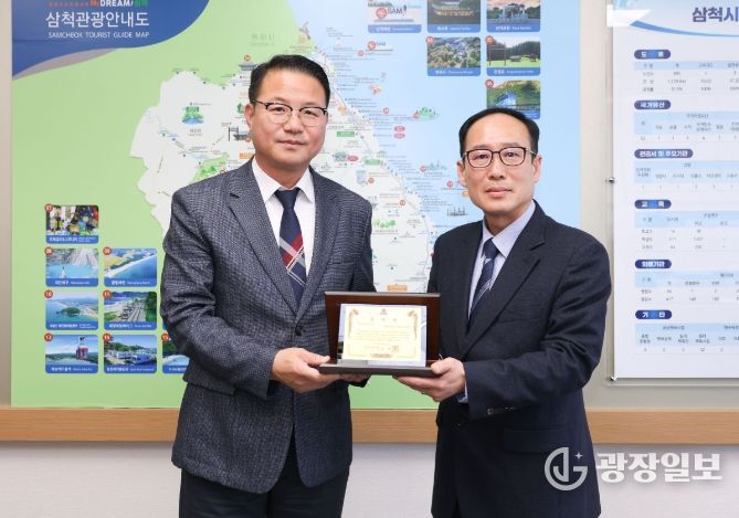 광장일보 이현나 기자 | 삼척시는 4월 20일 '희망 2026 나눔캠페인' 기간에 고액기부단체로 선정된 종단대순진리회 성주회(사립강원종합박물관)에 이웃돕기 나눔확산 문화에 기여한 공로를 기리기 위한 감사패 전달식을 가졌다.