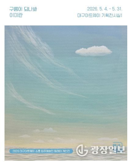 광장일보 주재영 기자 | 대구문화예술진흥원 문화예술본부에서 운영하는 대구아트웨이는 전시 프로그램 '월간범어'의 일환으로 이미란 작가의 개인전 ‘구름이 되나봐’로, 오는 5월 4일부터 31일까지 대구아트웨이 기획전시실 1에서 선보인다.