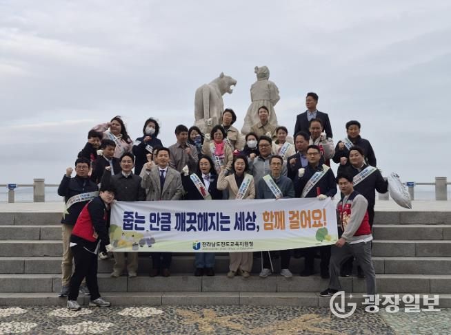 광장일보 주재영 기자 | 전라남도진도교육지원청은 4월 20일 진도 신비의 바닷길 축제장 일원에서 교직원의 환경 실천 역량을 높이고 지속가능한 생태환경 조성을 위한 ‘공생의 길 도보 탐사(플로깅)’ 활동을 운영했다.