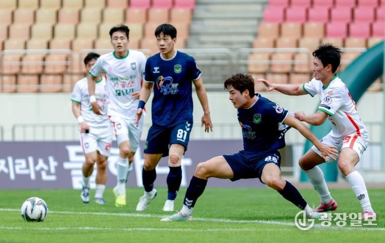 진주시민축구단은 지난 19일 진주종합경기장에서 열린 금산인삼FC와의 7라운드 홈경기에서 경기 종료 직전 터진 윤도원의 결승골에 힘입어 1-0 승리를 거두었다.
