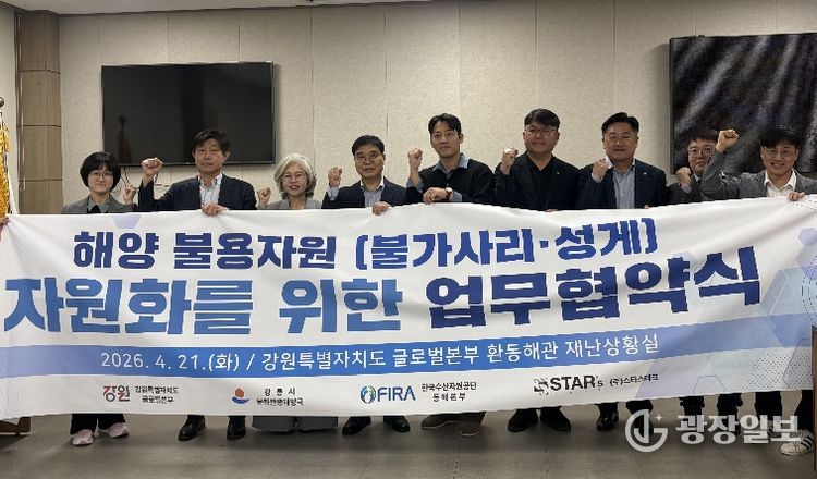광장일보 이현나 기자 | 강릉시는 21일 강원특별자치도청 글로벌본부 환동해관에서 강원특별자치도, 한국수산자원공단 동해본부, ㈜스타스테크와 함께 ‘해양 불용자원 자원화를 위한 업무협약’을 체결했다고 밝혔다.