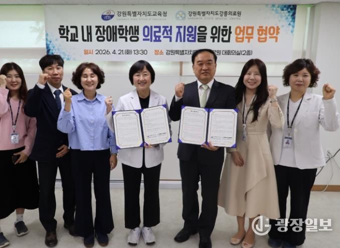 광장일보 이현나 기자 | 강원특별자치도교육청은 4월 21일 13시 30분, 강원특별자치도강릉의료원과 강릉·동해 지역 특수학교 중도장애학생의 학교 내 의료적 지원 강화를 위한 업무협약(MOU)을 체결한다.