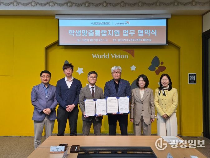 광장일보 주재영 기자 | 대구남부교육지원청은 4월 21일 월드비전 대구경북사업본부와 교육취약계층 위기아동 및 가족돌봄청소년 지원을 위한 업무협약(MOU)을 체결한다.