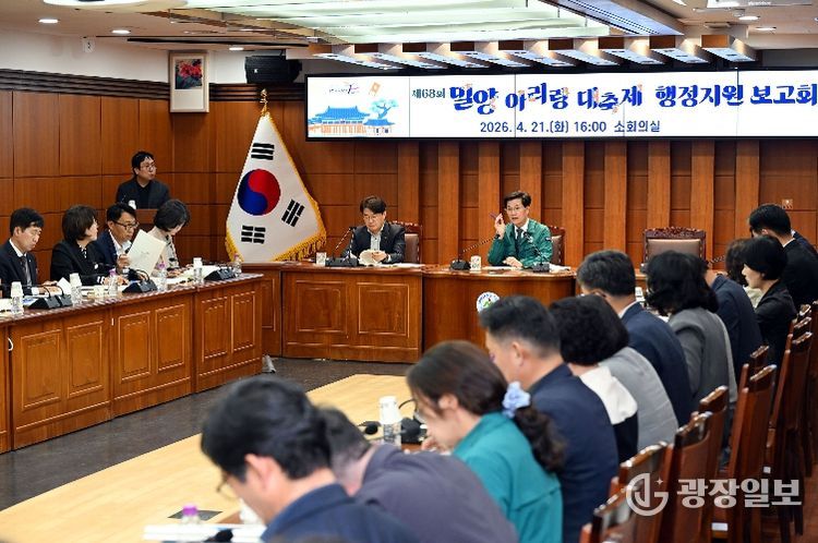 광장일보 주재영 기자 | 경남 밀양시는 21일 시청 소회의실에서 오는 5월 7일부터 10일까지 나흘간 열리는 제68회 밀양아리랑대축제의 성공적인 개최를 위한 행정지원 보고회를 가졌다.