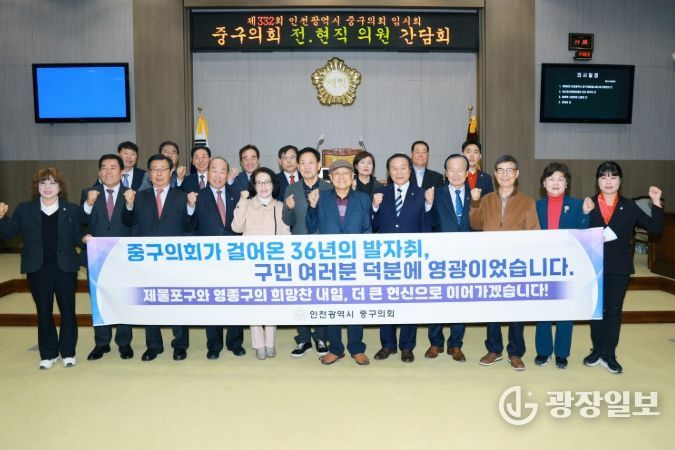 광장일보 주재영 기자 | 인천 중구의회는 21일, 제332회 임시회 개회를 맞아 역대 의원들을 초청하여 36년간의 의정 성과를 되돌아보고 향후 행정체제 개편에 대비한 고견을 청취하는 간담회를 개최했다.