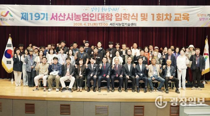 광장일보 나학천 기자 | 충남 서산시는 21일 서산시농업기술센터 교육관에서 ‘제19기 서산시농업인대학’ 입학식을 개최했다고 밝혔다.