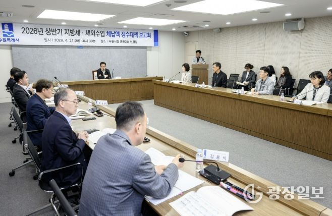 광장일보 주재영 기자 | 수원특례시는 21일 시청 상황실에서 김현수 제1부시장 주재로 상반기 징수대책보고회를 열고, 징수 부서별 징수목표액과 징수 상황을 점검했다.