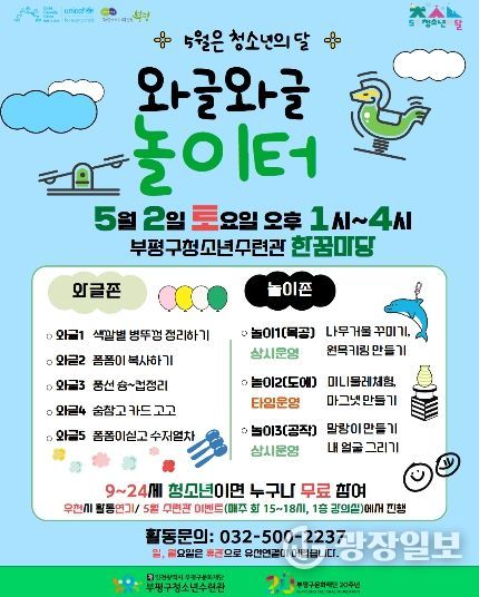 광장일보 주재영 기자 | 부평구청소년수련관은 오는 5월 2일 청소년 체험 행사 ‘와글와글 놀이터’를 운영한다고 밝혔다.