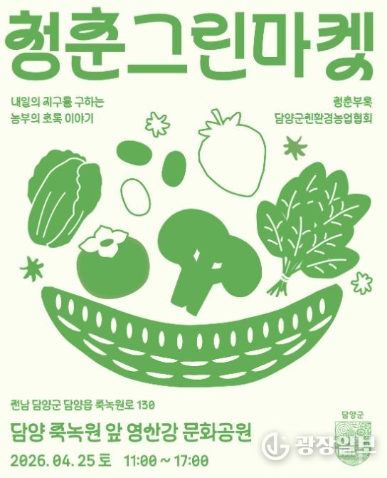 광장일보 주재영 기자 | 담양군친환경농업협회가 오는 25일 오전 11시부터 오후 5시까지 죽녹원 앞 영산강 문화공원에서 ‘제2회 청춘그린마켓’을 연다.